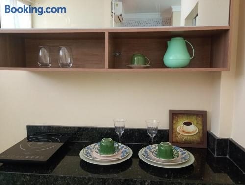 Kitnet linda 8A is situated in Montes Claros. Free WiFi is provided throughout the property. The air-conditioned apartment is composed of 1 separate bedroom, a fully equipped kitchen, and 1 bathroom. A flat-screen TV is available.