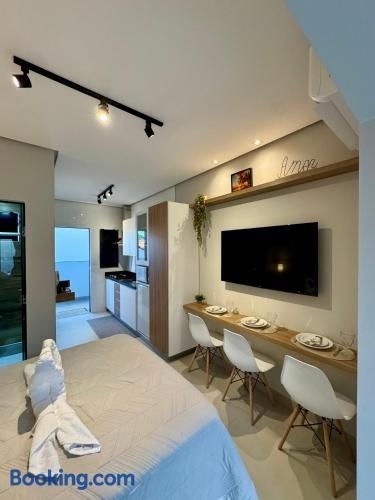 Studio aconchegante com garagem privativa e varanda is situated in Montes Claros. This property offers access to a balcony, free private parking and free WiFi.