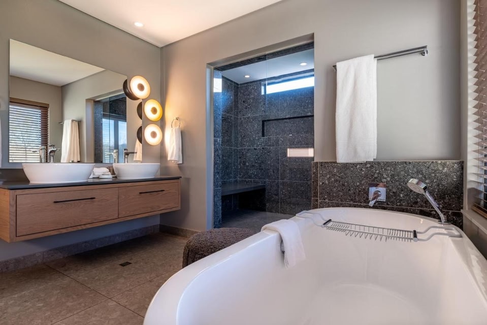 Bakubung Self-Catering Chalets sijaitsee kohteessa Pilanesbergin kansallispuisto. Pilanesberg National Park ja Letsasing Private Game Park ovat hyviä kohteita alueen luonnosta kiinnostuneille, ja alueen mielenkiintoisiin kohteisiin kuuluvat The Valley of Waves ja Steam Train Rides Stimela. Haluatko osallistua johonkin tapahtumaan tai käydä matsissa vierailusi aikana? Tarkista kohteiden Mogwase Stadium ja Royal Bafokeng Stadium tapahtumakalenteri. Täällä yöpyessäsi voit nauttia kaikista kodin mukavuuksista, joihin kuuluu ilmainen Wi-Fi ja televisio, sekä kahvin-/vedenkeitin ja puutarha. Muihin mukavuuksiin kuuluu pyyhkeet, kattotuuletin ja hiustenkuivaaja.