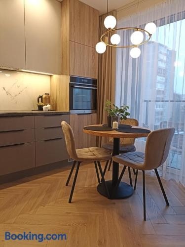 Located within the Virsuliskes district in Vilnius, Apartments with a balcony and an impressive terrace on the roof of the house has air conditioning, a balcony, and inner courtyard views.