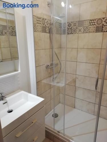 Situated in Bernières-sur-Mer in the Lower Normandy region with East Beach nearby, Bel appartement avec jardin à 50m des plages du debarquement features accommodation with free private parking. The property is around 4.