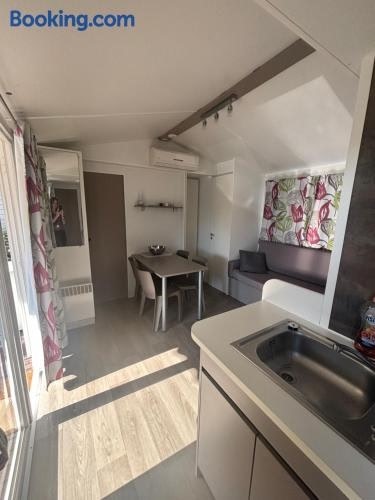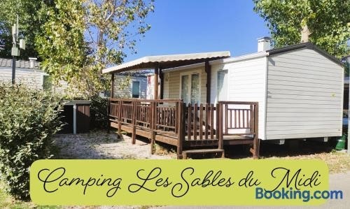 Located just 15 km from Fonserannes Lock, MOBIL HOME Jasmin 38 offers accommodation in Valras-Plage with access to a terrace, a bar, as well as a minimarket.