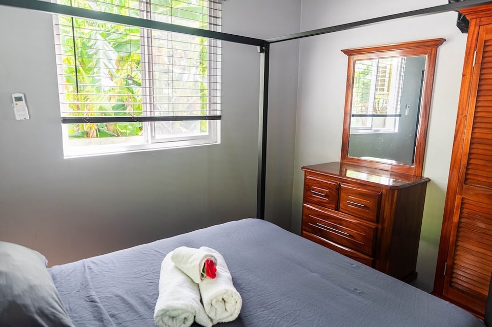 Tämä huoneisto sijaitsee lähellä rantaa. Alueen luonnonkauneuteen voi tutustua kohteissa Gros Piton ja Sandyn ranta. Diamond-vesiputoukset ja Diamond Botanical Gardens ovat myös vierailun arvoisia. Kannattaa myös varata aikaa alueen aktiviteetteihin tutustumiseen. Niihin kuuluu muun muassa kuumat lähteet. Tässä lähellä kuumia lähteitä sijaitsevassa savuttomassa huoneistossa voit elää paikallisten tavoin. Windwardsaaret ja Pitons Management Area sijaitsevat lyhyen kävelymatkan päässä, joten voit hyödyntää majoituspaikan tarjoaman paikan päällä olevan pysäköinnin ja jättää auton sinne. Vietä päivä läheisellä rannalla, tai rentoudu tässä huoneistossa, jossa käytössäsi on ulkouima-allas, laituri ja ulkokalusteet. Ilmainen langaton internetyhteys pitää sinut yhteydessä ystäviisi, ja pitkän päivän jälkeen voit rentoutua digi-TV:n ääressä ensi-iltaelokuvia katsellen. Tutustuessasi tämän 2-makuuhuoneisen loma-asunnon mukavuuksiin tulet huomaamaan, että niihin kuuluu ilmastointi ja paikallinen ateriakuljetuspalvelu. Pyykinpesutilojen ansiosta voit lisäksi pakata vähemmän vaatteita lomallesi.