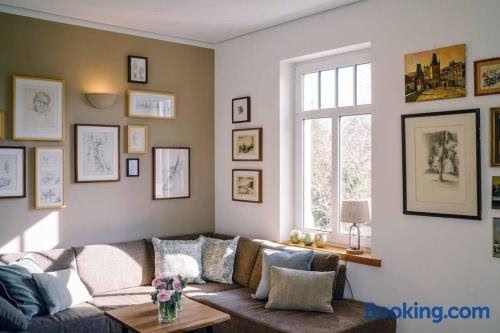 Luxurious AccommodationFerienwohnung Radeberg offers a spacious apartment with 4 bedrooms, a fully equipped kitchen, and a living room with a flat-screen TV. Enjoy the convenience of a terrace for outdoor dining and free WiFi throughout the property.Outdoor ActivitiesGuests can explore the beautiful surroundings by cycling nearby or relax in the garden. With attractions like Frauenkirche Dresden and Semperoper just 17 km away, there is no shortage of things to do.Convenient LocationSituated near major landmarks like Old Masters Picture Gallery and Dresden Royal Palace, this non-smoking property is the perfect base for your adventures in Radeberg.Book now to experience the comfort and convenience of Ferienwohnung Radeberg.