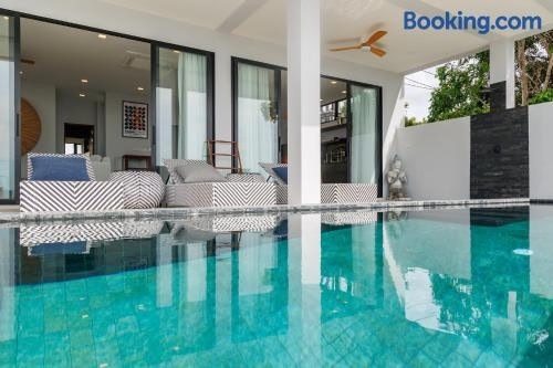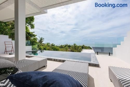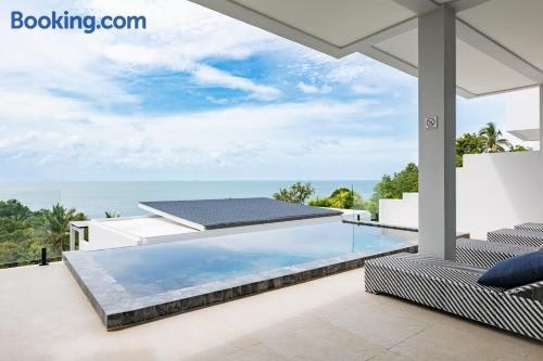 Featuring air-conditioned accommodation with a private pool, pool view and a patio, Serenity Villa piscine privée vue mer! is located in Haad Tian. This beachfront property offers access to a balcony, free private parking and free WiFi.