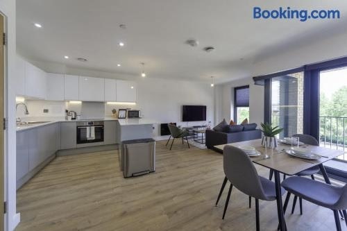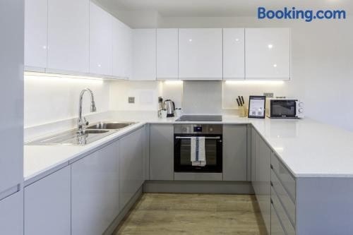 Situated in Ashford in the Kent region, Stylish 1 Bedroom Apartment in Central Ashford has a patio. It is located 23 km from Eurotunnel UK and features a lift. The property is non-smoking and is set 500 metres from Ashford International Train. ..